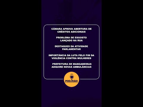 Assista neste episódio: Câmara aprova abertura de créditos adicionais; problema de esgoto lançado na rua; destaques da atividade parlamentar; importância da lula pelo fim da violência contra mulheres; Prefeitura de Mangabeiras adquire novas ambulâncias.